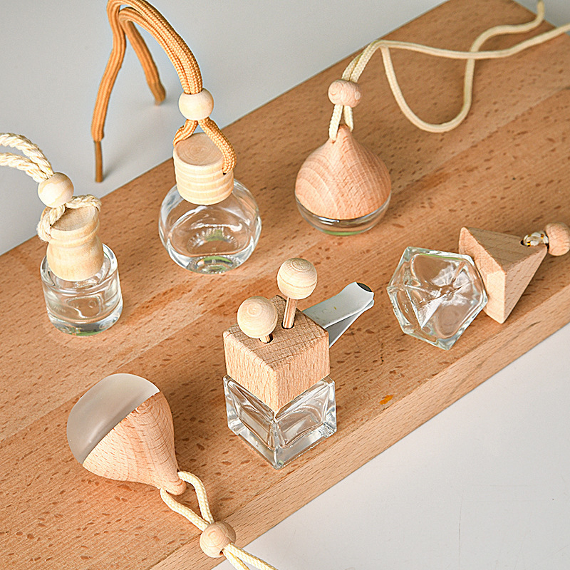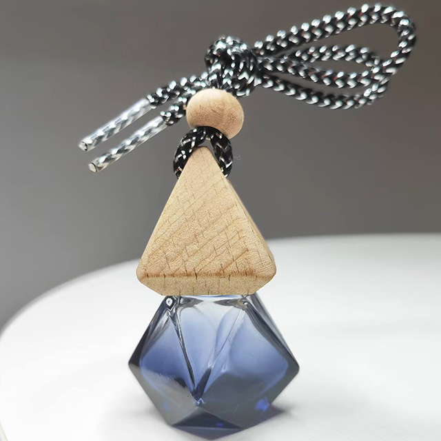 車の香水ボトル 8 ミリリットル車のペンダントダイヤモンドボトルモデル DH-796 三角形ブナ材カバー揮発性アロマセラピー空ボトル