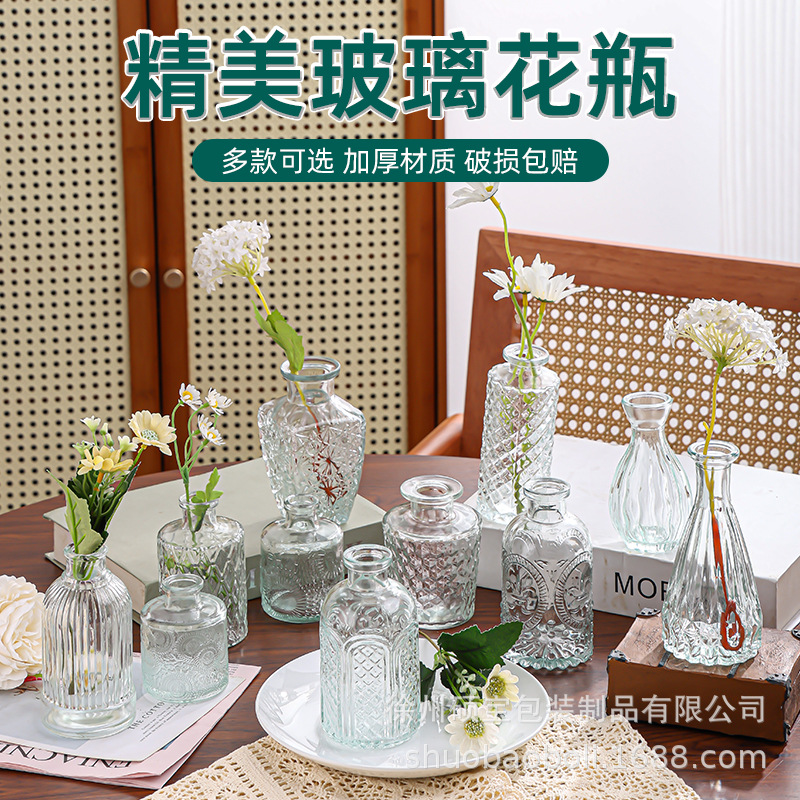 ヨーロッパのレトロな花瓶のガラスのアロマボトルのミニ透明な花瓶のリビングルームの置物のシンプルなテーブルの装飾の家庭