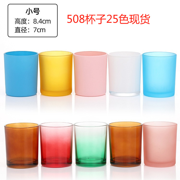 卸売り透明ガラスろうそく台ろうそくカップシルク印焼き花イエス教会直筒スプレー色の様々な規格