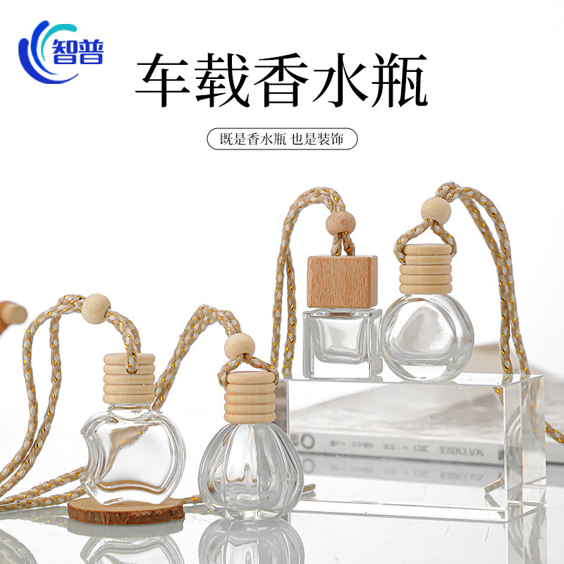 透明車用アロマボトル、ロープペンダント付きアロマセラピー空ボトル、ガラス詰め替えボトル、香り揮発性ガラスアロマボトル