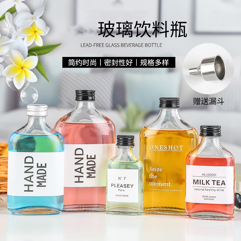 スポット卸売飲料ボトルジュースボトルガラスボトル100mlフラットボトル50mlフルーツワインコーヒーコールドドリンクソーダ水コールドブリュー