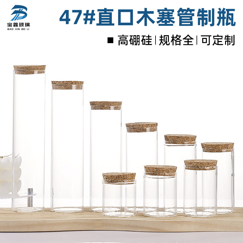 直径47mmストレート口コルク栓高ホウケイ酸透明ガラスボトル花茶冬虫夏草ボトル願い漂流ボトル