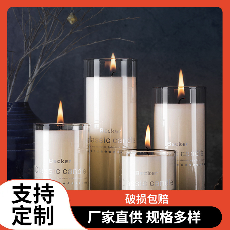 シンプルな高ホウ素シリコンキャンドルカップ透明ヨーロッパ風燭台置物蓋付きガラス瓶ウェディングレストランろうそく台香薫