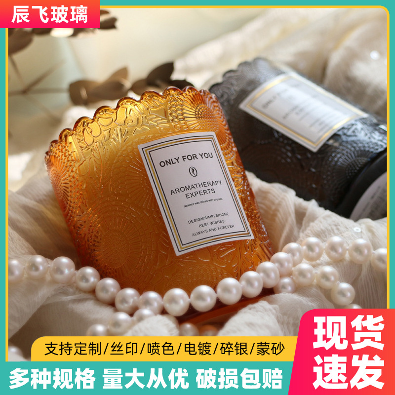 レリーフガラスキャンドルカップ空カップトランペットキャンドルカップ家庭用レトロな雰囲気振り子アロマキャンドルカップ