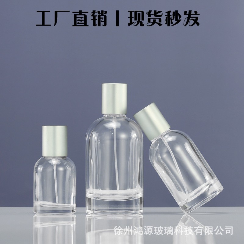 直円型スプレーボトルガラスセットボトル、シンプルで高級感のあるローションボトル、半黒半白の蓋、在庫あり、輸出専用