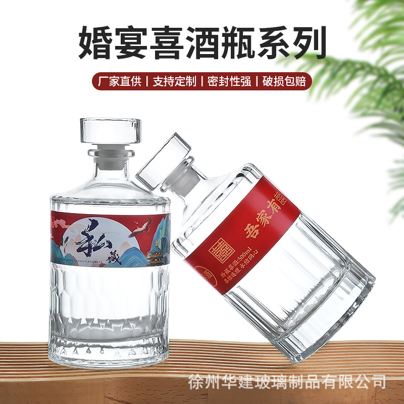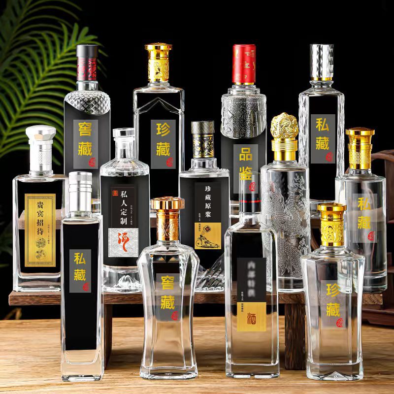 1斤入りの酒瓶500mlの酒瓶を卸売りして家庭用の個人的な注文をして、高級なガラス白酒瓶を作ってギフトボックスを持っている