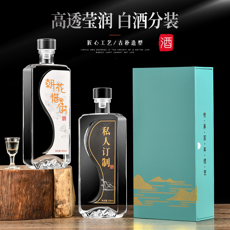 500ml透明ガラス白瓶空瓶グラデーション観山瓶1斤入り空瓶高級密封ガラス瓶