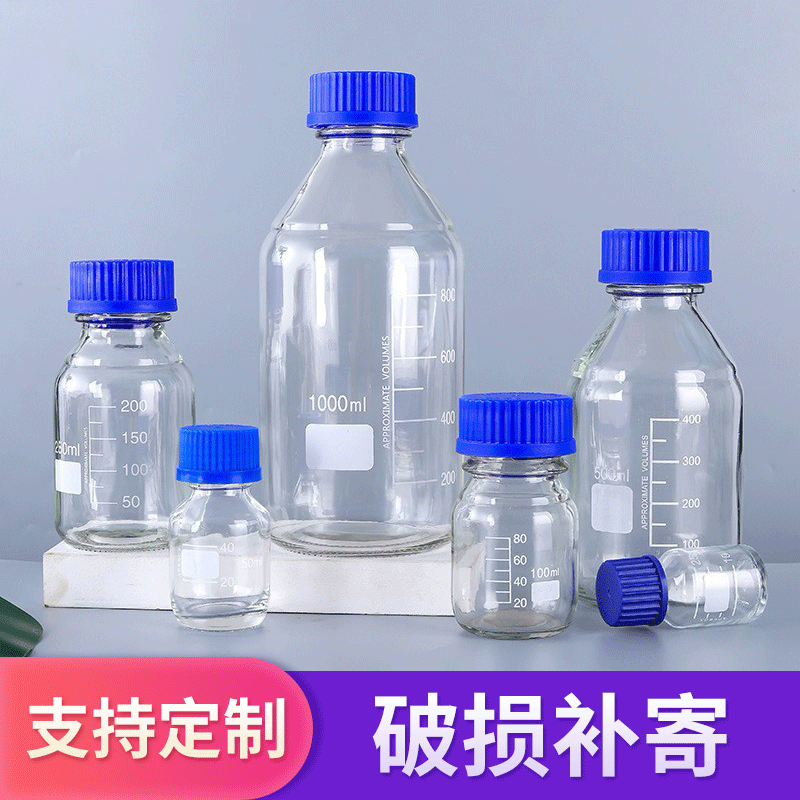 試薬瓶ガラス青蓋試薬瓶透明ガラス瓶青蓋糸口流動相瓶目盛り付きガラス瓶
