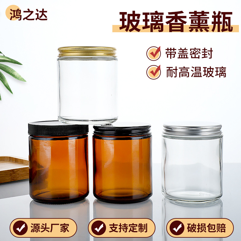 茶色のクリームボトル、透明なフェイスクリームボトル、アイクリームボトル、大きな口のアロマキャンドルカップ、空のカップ、キャンドルガラス瓶