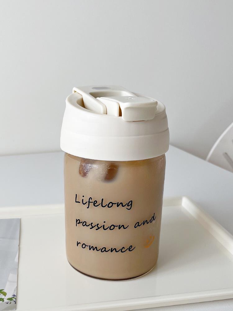 グラス夏携帯ストローカップ高颜値ins风学生外出水カップレディースお茶ダブルドリンクカップ