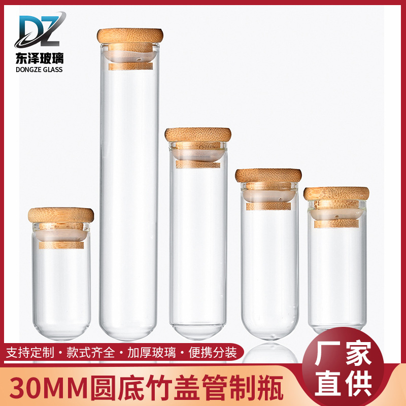30 ミリメートル丸底パイプボトルガラスウィッシングボトル手作り漂流ボトル竹蓋包装ボトル詰め替え試験管試薬ボトル