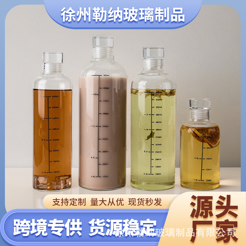 新しいアイデアガラス果実ボトル飲料ボトル哺乳瓶密封ジュース瓶ガラス透明果実ボトル透明