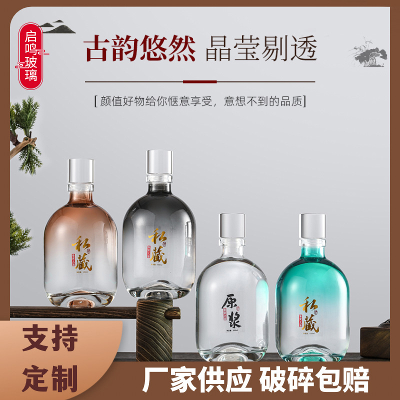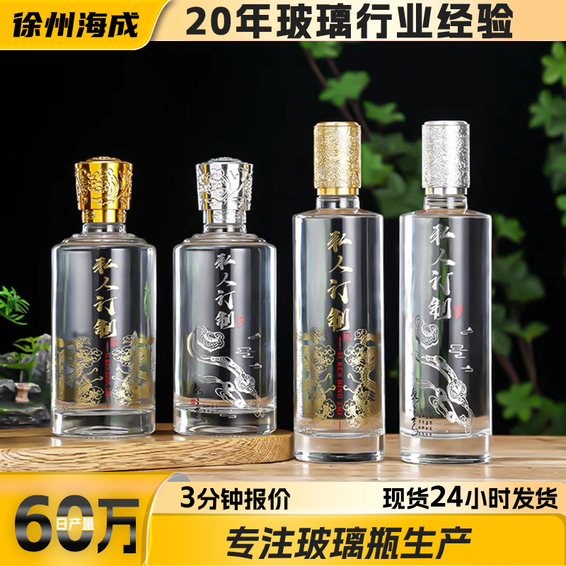 白酒瓶セットラベル付き高級ガラス酒瓶1斤入り高級ガラス白酒瓶蓋付き高颜値