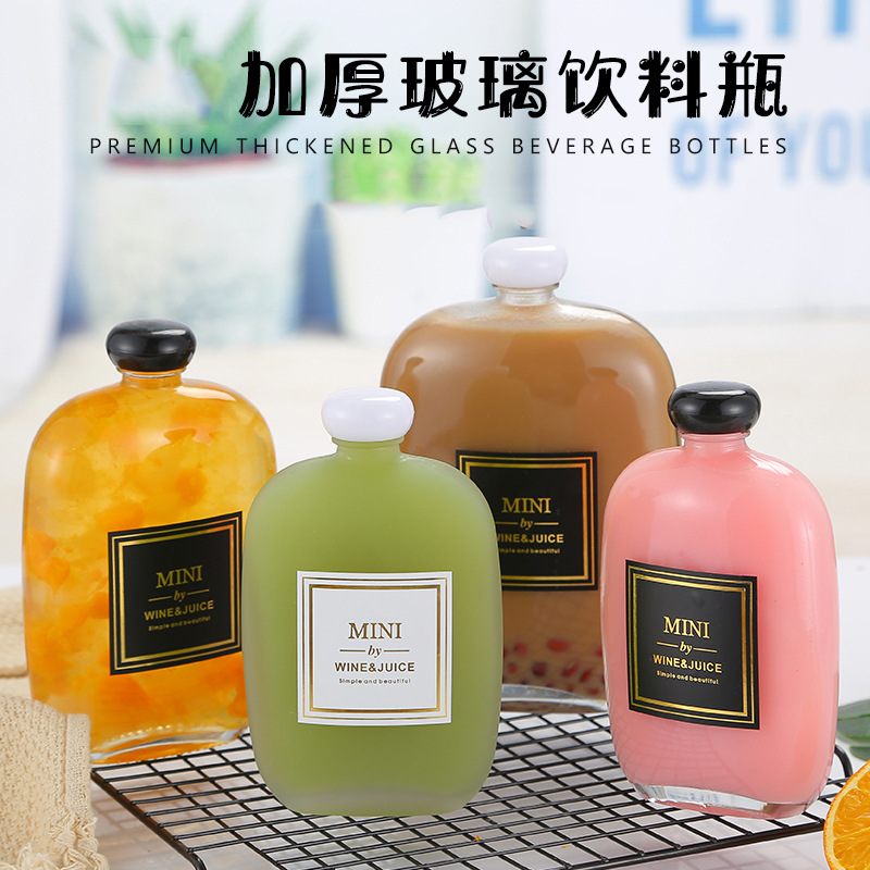 新しいアイデア200ml 250mllガラスジュース瓶冷抽出コーヒー瓶扁方小酒瓶ネット赤哺乳茶瓶