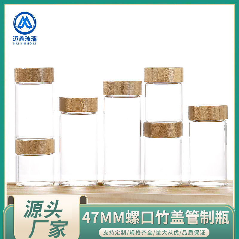 47 ミリメートル竹蓋高ホウケイ酸ガラスボトル密封された保存ボトルキッチン穀物包装空ボトル文具ディスプレイ包装ボトル