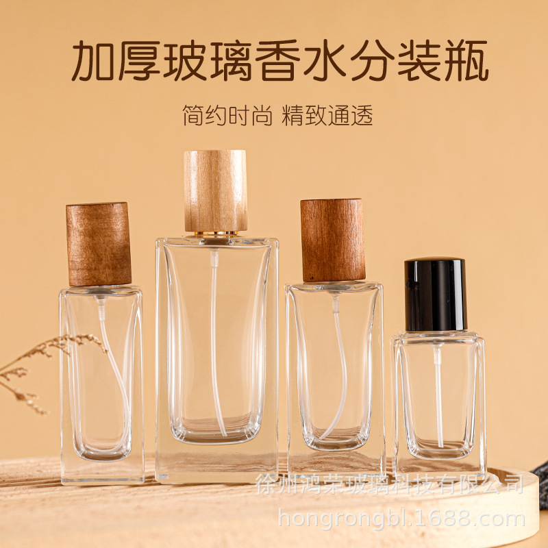 卸売り現物30mlバヨネット香水瓶50ml角型透明分注瓶携帯押圧式蓋付きガラス瓶