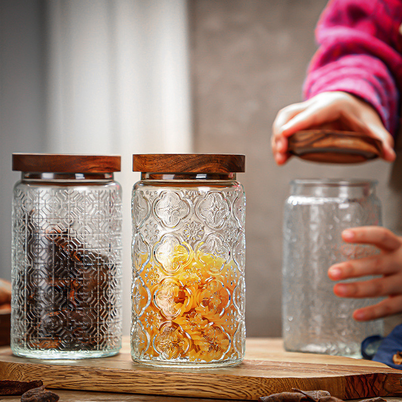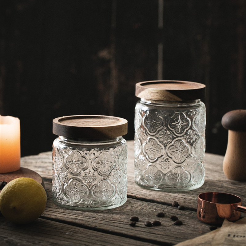 レトロなレリーフベゴニアの花ガラス貯蔵缶間食茶葉家庭用密封缶キッチン収納ガラス瓶燭台