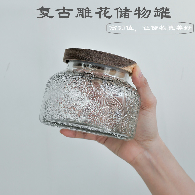 新中国風ベゴニア花ガラス密封貯蔵タンク家庭用キッチン収納タンク茶葉陳皮大容量貯蔵タンク