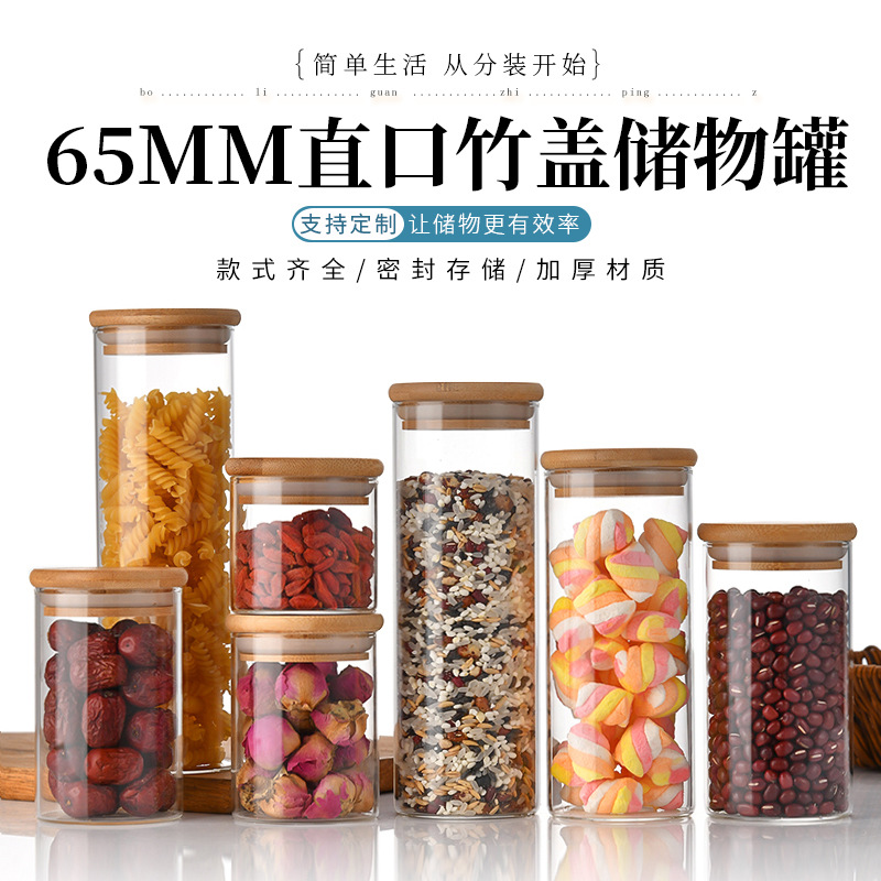 65mm竹蓋高ホウ素シリコンガラス瓶花茶包装パイプ瓶食品密封貯蔵タンク茶葉密封缶