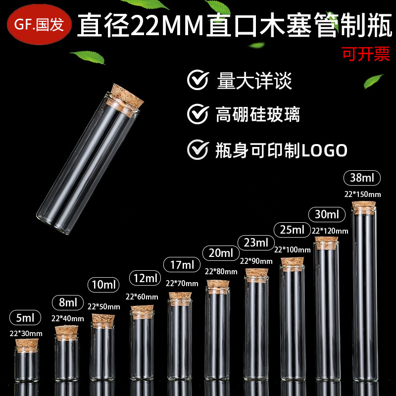 22mmストレート口木栓ガラス製ボトル包装虫草金豆豆花茶ギフトボトル願い事瓶記念ボトル