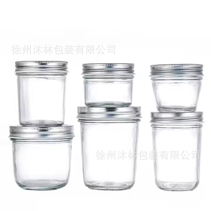 アマゾン透明メイソンガラス瓶周囲ガラス密封貯蔵タンク卸売りブリキキャップ瓶