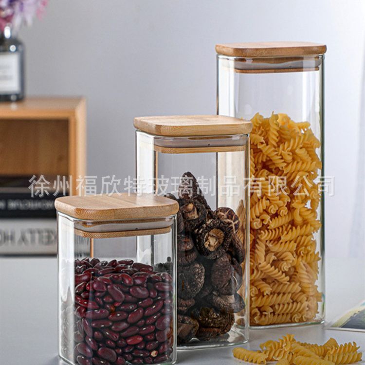 直径100mm竹蓋透明ガラス角型貯蔵タンク高ホウ素シリコン茶葉調味料キッチン収納シール