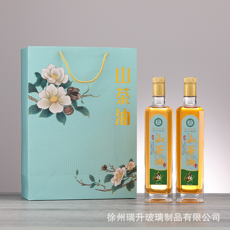 晶白料500mlガラス油瓶セットツバキ油瓶オリーブ油瓶アマニ油瓶クルミ油空瓶