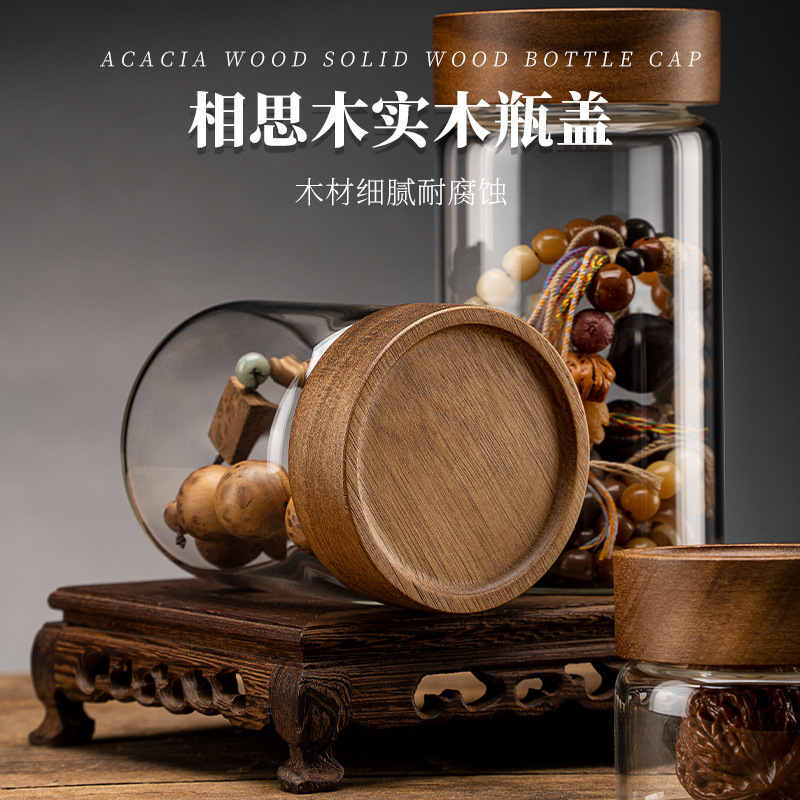 大容量高ホウケイ酸ガラス貯蔵缶アカシア木蓋陳皮貯蔵缶蜂蜜茶葉包装瓶密封缶