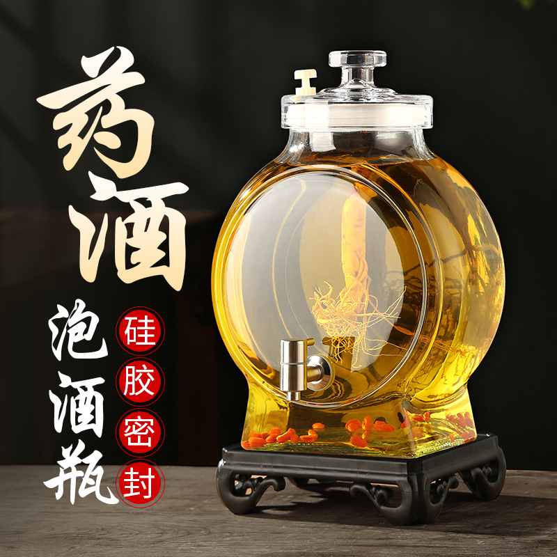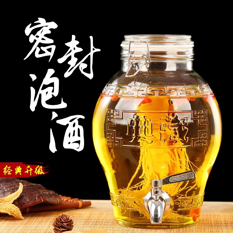 酒入れガラス瓶は蛇口付き6斤10斤の薬酒酒醸造缶缶家庭用密封酒入れかめ専用酒瓶