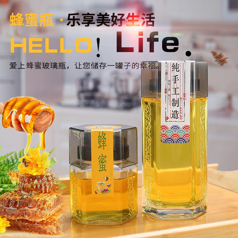 蜂蜜調剤ボトル増粘透明ガラス家庭用食品グレードのジャム密封瓶新しい角瓶半斤と一斤の調剤