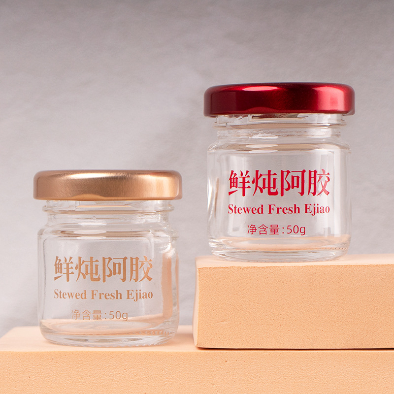35ml新鮮煮込み阿膠瓶透明ガラス分注空瓶50gトランペット密封瓶蜂蜜シルク印刷瓶