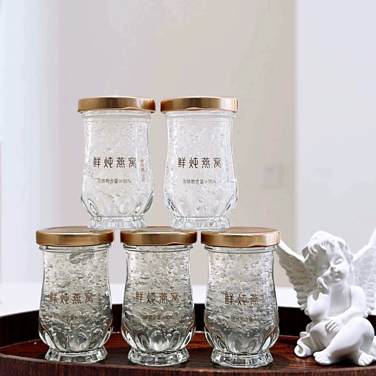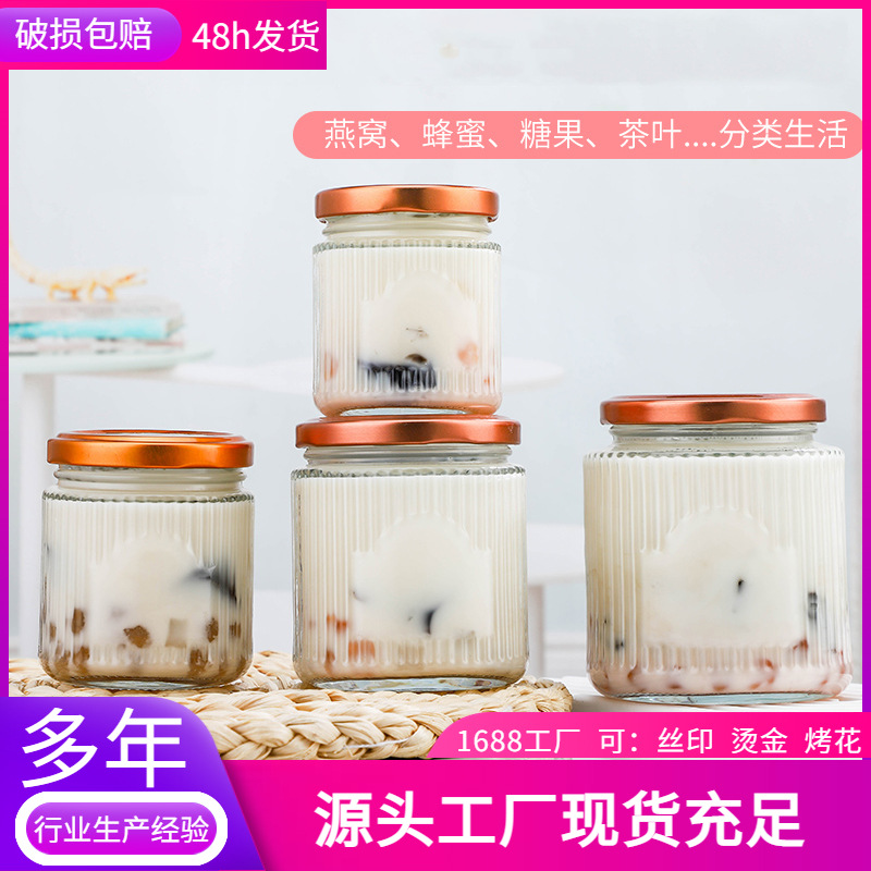 现货玻璃燕窝瓶竖纹鲜炖燕窝空瓶牛奶花胶鱼胶铁盖可炖煮玻璃空瓶