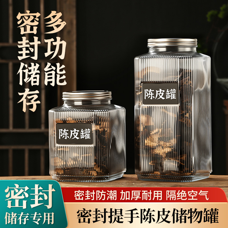 みかんの皮保存瓶、特別なガラス瓶、漢方薬密封瓶、食品グレードの茶瓶、みかんの皮保存瓶