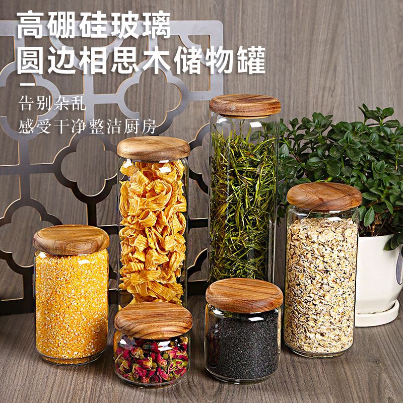 カスタマイズされたアカシア木製ガラス保存瓶キッチン収納アーティファクト透明ガラス瓶茶ガラス保存瓶