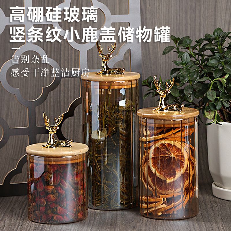 ラウンド保存瓶ガラス密封瓶家庭用茶みかんの皮保存デスクトップ鹿蓋ストライプガラス瓶