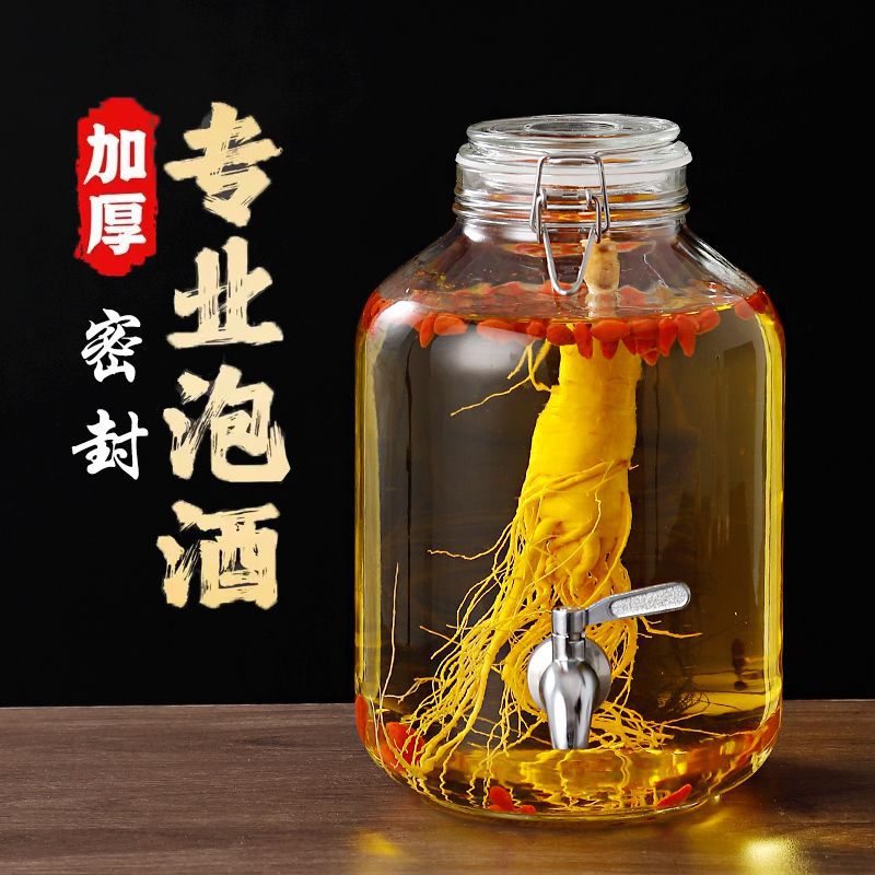ワイン漬け用ガラス瓶、蛇口付き大型瓶、家庭用密封ワイン瓶、高麗人参薬用酒漬け用ガラス瓶