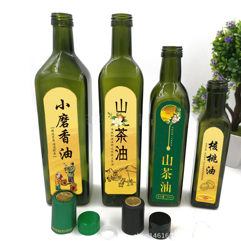 墨緑オリーブ油瓶500mlガラス瓶家庭用調味料瓶遮光ガラス大型油瓶はlogを印刷することができる