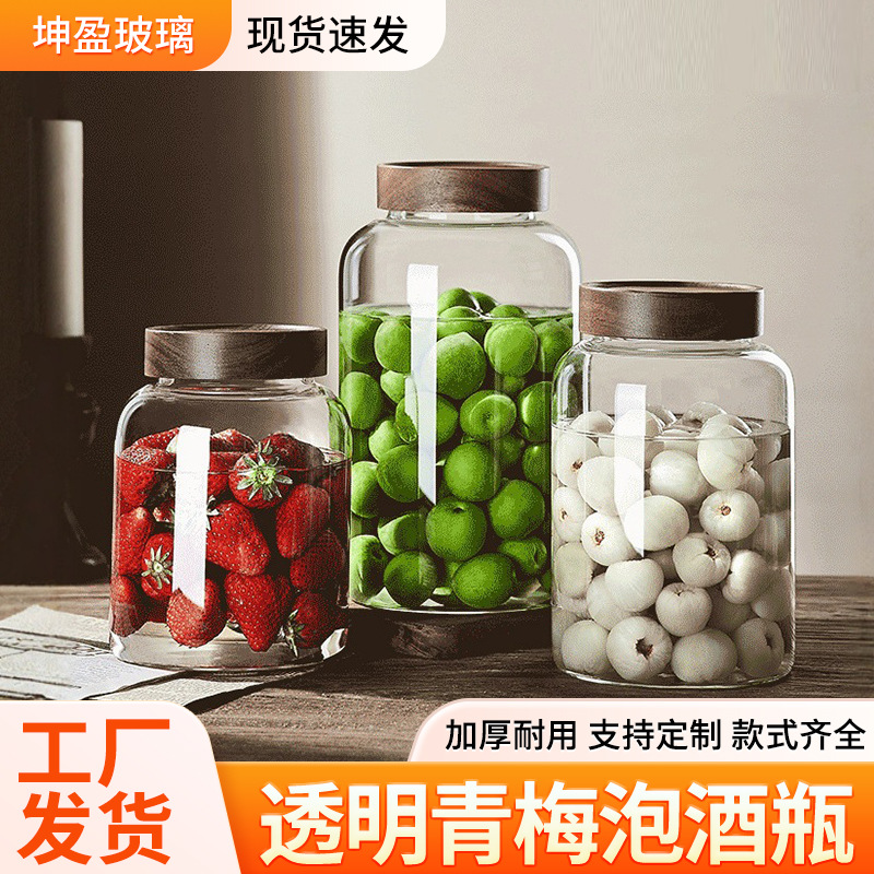 現物供給ガラス透明バックル密封缶貯蔵タンク雑穀茶葉収納タンク蜂蜜酵素瓶泡酒