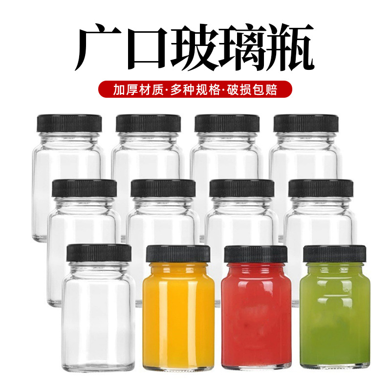 工場直送透明ガラスボトル飲料ボトル広口蓋付きジュースボトル小型ガラス飲料ボトル保存ボトル