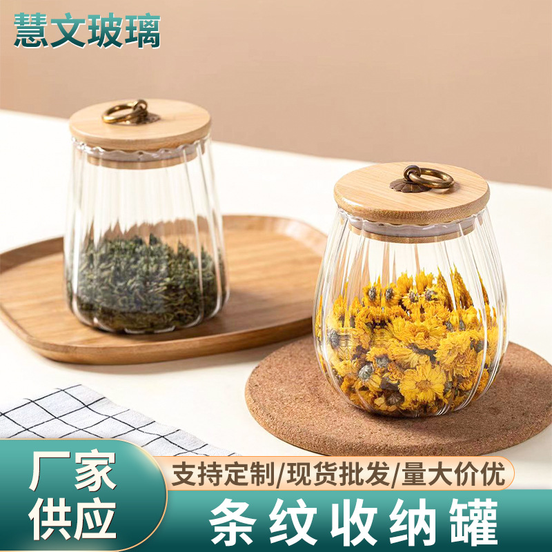 ガラス食品缶クリエイティブ茶叶缶大容量透明ストレージ缶ストライプ収纳ガラス缶シール缶