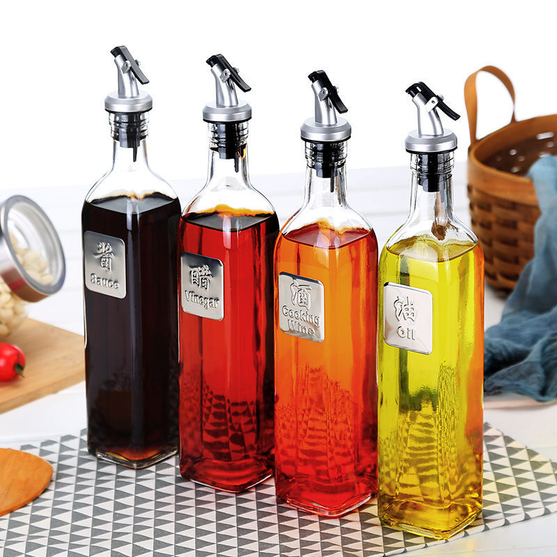 卸売り500ml角型ガラス油瓶家庭用キッチンオイルポット漏れ防止醤油酢瓶油缶調味料瓶セット