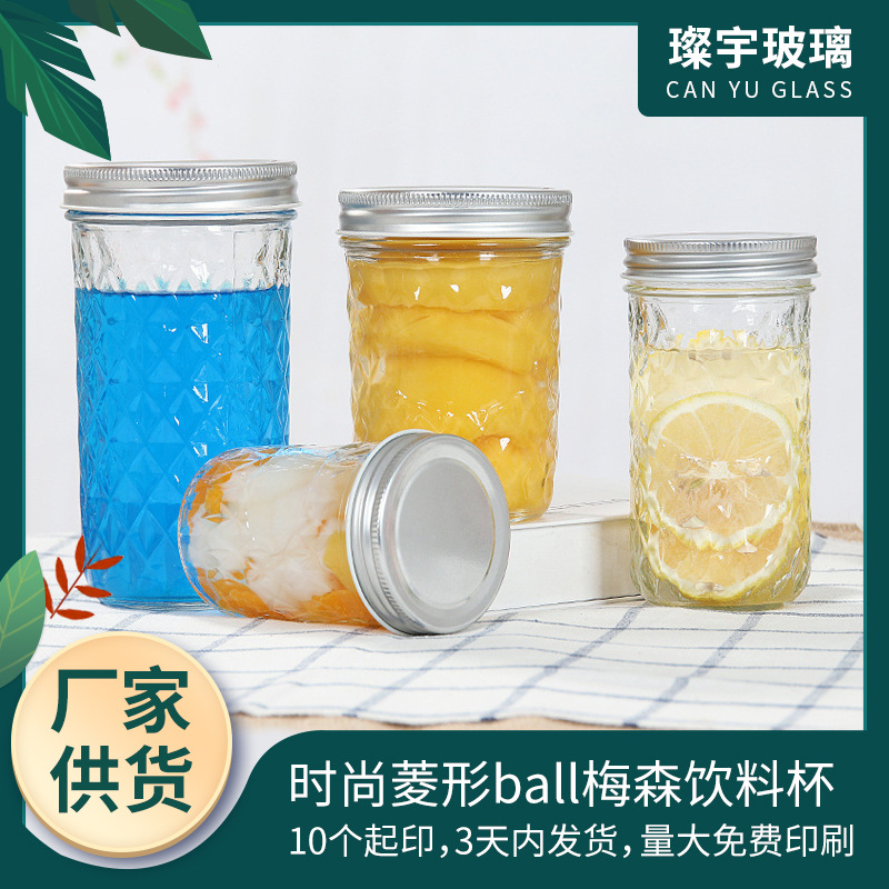 ファッションひし形bメイソン飲料カップダイヤモンドジュースカップ飲食ミルクティーカップジャム瓶蜂蜜瓶
