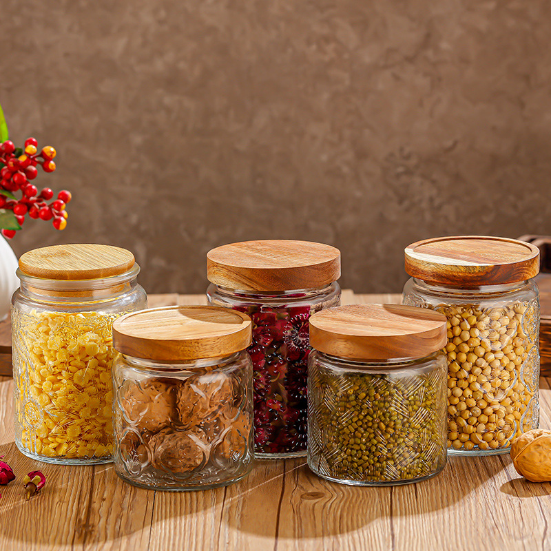 ガラスボトル保存瓶密封瓶食品グレード大型レリーフキャンディ竹蓋スナックティーキッチン収納