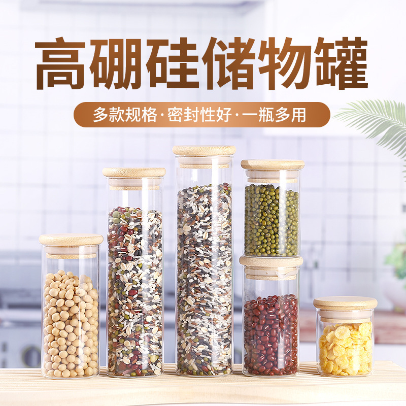 円筒形高ホウケイ酸保存瓶竹蓋密封瓶直径 53 ミリメートル茶瓶キッチン収納包装ボトル