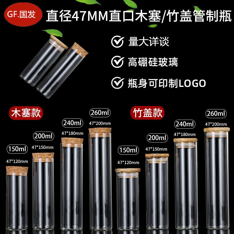 直径53mm高ホウ素シリコンガラス収納瓶木栓竹蓋ガラス瓶高級沈香手串瓶花茶缶