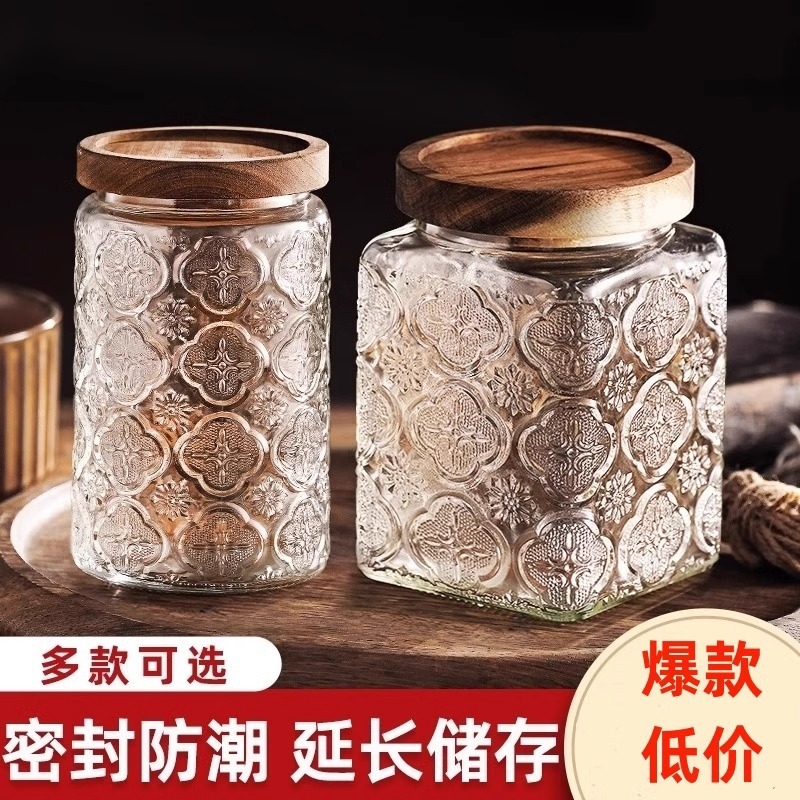 ガラス密封缶食品級貯蔵缶子氷糖白糖乾果間食収納缶茶葉厨房貯蔵缶