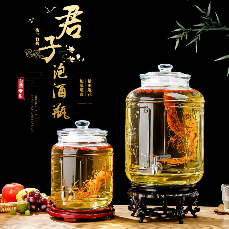 密封泡酒ガラス瓶蛇口付き10斤25斤家庭用泡酒缶薬瓶透明ガラス酒造缶