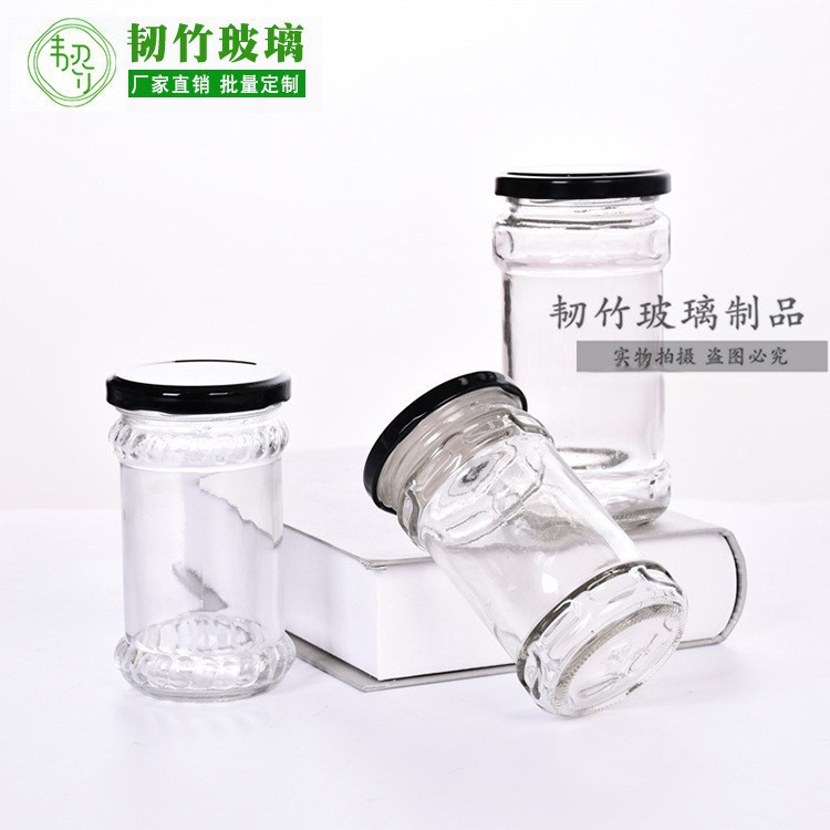 円形ガラス瓶透明密封缶食品級缶詰瓶空装カプサイソース瓶蜂蜜蓋付き蒸煮可能