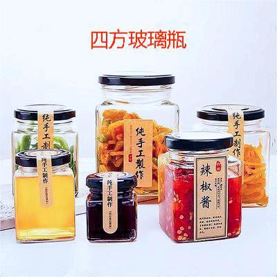卸売り四方ガラス密封缶四稜膏滋瓶蓋付き蜂蜜缶漬物喜蜜ジャムガラス瓶