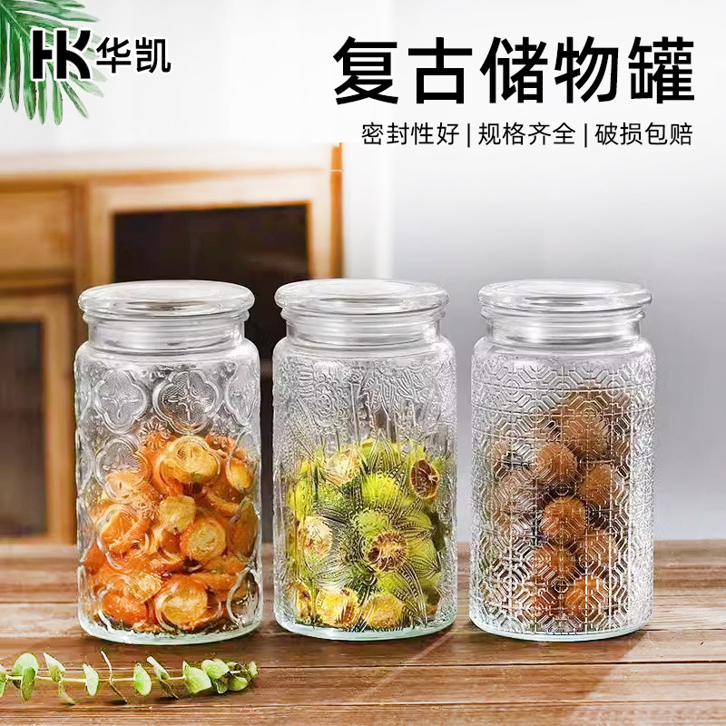 家庭用収納シーリングガラス収納缶レトロエンボスガラスコーヒー豆缶ティーキャンディー収納缶